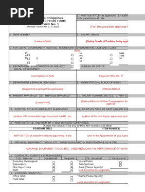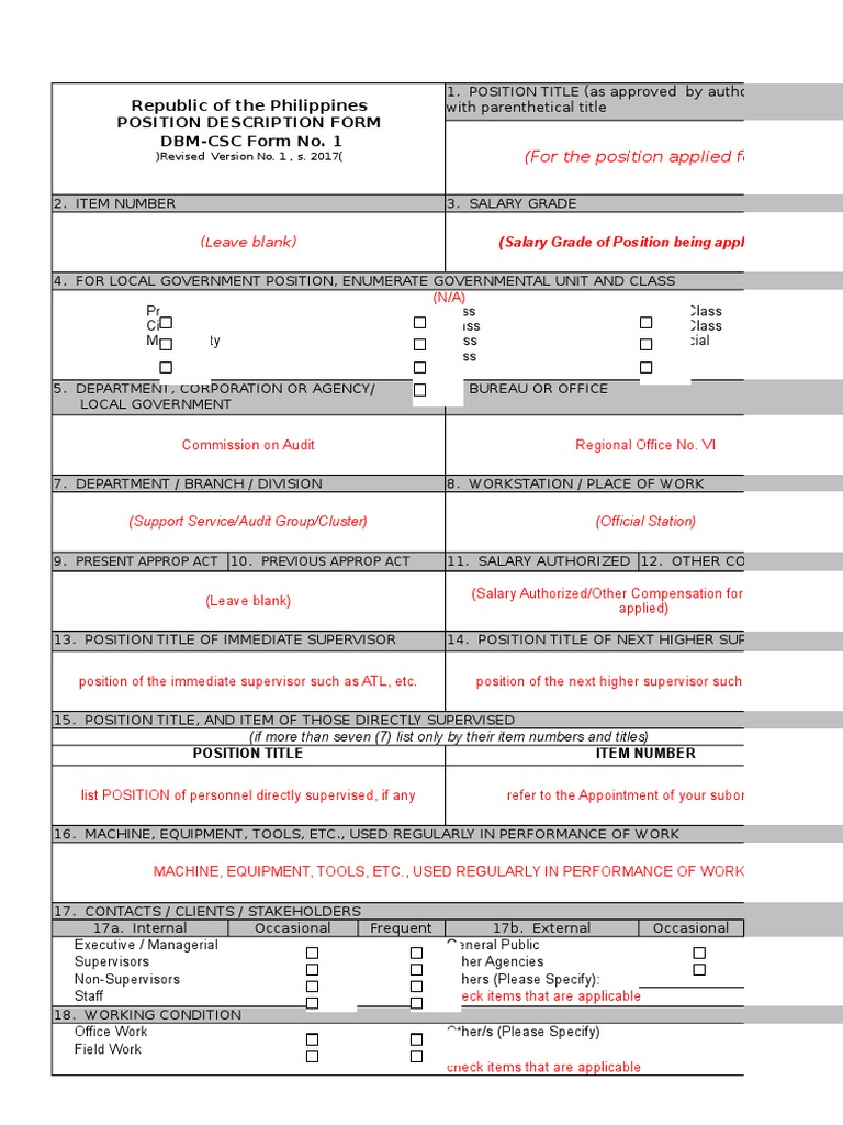 Dbm Csc Form No 1 Position Description Forms Revised 2017 Sample Government Politics